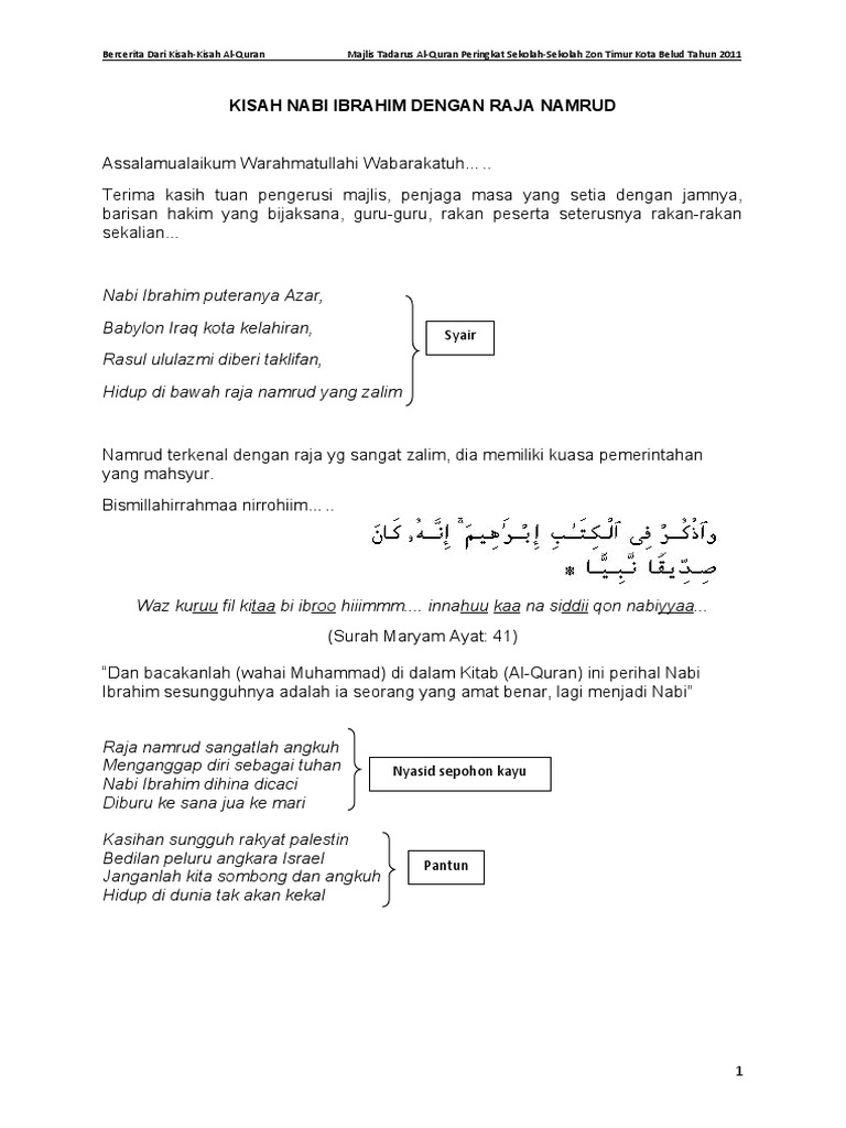Related : Teks Bercerita Kisah Al Quran Raja Namrud Yang Sombong - Raja namrud terkenal sebagai raja yang bengis dan kejam..