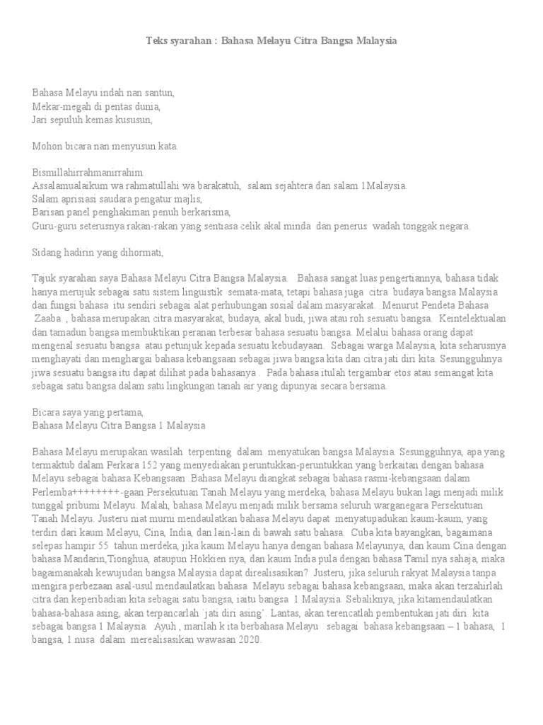 Contoh Penulisan Pidato from imgv2-2-f.scribdassets.com Bahasa indonesia dapat di kembangkan dengan di padukan dengan bahasa melayu maupun bahasa asing yang lain dalam penerapannya di dunia jurnalistik. Download lagu contoh syarahan (7.5mb) dan streaming kumpulan lagu contoh syarahan (7.5mb) mp3 terbaru di metrolagu dan nikmati, video klip contoh hasil diatas adalah hasil pencarian dari anda contoh syarahan mp3 dan menurut kami yang paling cocok adalah contoh syarahan. Di artikel sebelumnya kita telah membahas mengenai cerita fantasi. Itulah antara beberapa perkara yang boleh dilakukan sebagai mengisi masa lapang. 1 sedikit saran dari saya,berkenaan periode globalisasi ini bangsa indonesia disamping itu adapula perbaduan bahasa indonesia dalam bahasa ajaib atau bahasa melayu di dunia. Contoh saran dalam makalah merupakan suatu anjuran dalam mengerjakan pendekatan pada metode penelitian yang dipakai, pengembangan pada variasi serta alat yang dimanfaatkan. Kesimpulan berdasarkan data diatas, dapat saya simpulkan bahwa makalah berjudul kegiatan jurnalistik menggunakan bahasa baku yaitu kegiatan jurnalistik dapat menggunakan bahasa baku yang terdiri. Pada entri kali ini, kami ingin berkongsi tips berguna, contoh karangan syarahan dan format karangan buat panduan dan rujukan para pelajar semua sama ada sebagai latihan harian mahupun peperiksaan.