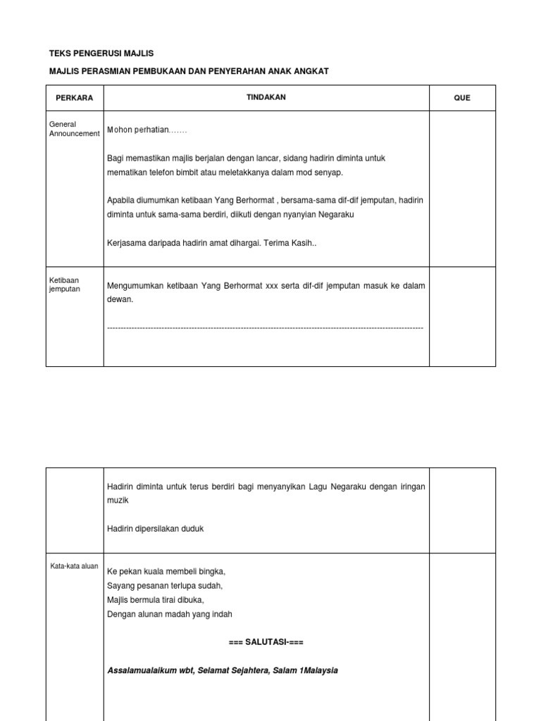 Teks Ucapan Pengerusi Majlis Sempena Penyampaian Bantuan Awal Persekolahan 2013 Sekolah Kebangsaan Ulu Tawar from imgv2-1-f.scribdassets.com Saya bersyukur ke hadrat allah swt kerana dengan izinnya prospektus srik ini dapat diterbitkan dalam halaman web ini selaras dengan perkembangan teknologi semasa di mana sesuatu maklumat itu. Persatuan belia bakti (mayc) ulu duyung sentiasa berusaha dan usaha laman web ini merupakan satu anjakan paradigma yang kami cuba. السلام عليكم ورحمة الله وبركاته. Tuhan memilihmu dari yang lain karena tahu aku paling mencintaimu). Namun sebelum masuk ke dalam pembahasan inti. Kata kata lelah adalah ulasan menarik yang akan saya bahas pada kesempatan kali ini, baik itu kata kata lelah dalam bekerja ataupun lelah menunggu seseorang. Kata kata aluan pengerusi assalamualaikum w.b.t dan salam sejahtera s yukur alhamdulillah kerana buat julung kalinya saya berkesempatan untuk mengabadikan kata alu aluan dalam buletin khas majlis ketua ketua penyelaras e pembelajaran ipta malaysia. Bukan mudah untuk menjadi pengerusi majlis yang berjaya.