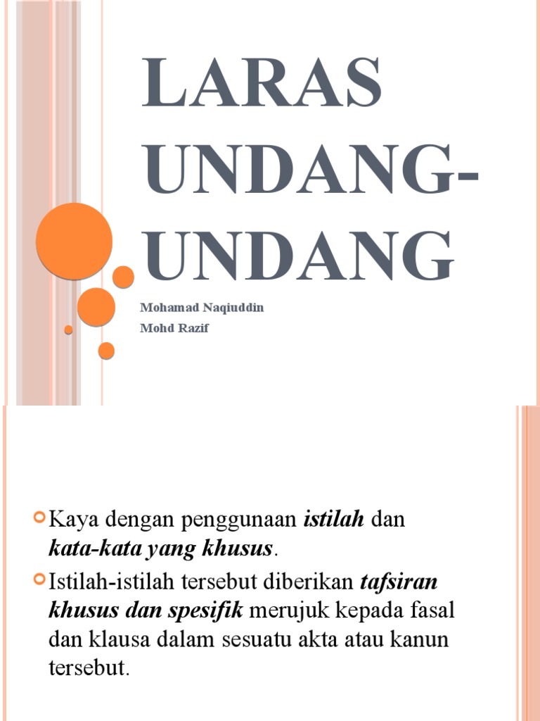 Laras bahasa terkait langsung dengan selingkung bidang (home style) dan keilmuan, sehingga dikenallah laras bahasa ilmiah dengan bagian subsublarasnya. Dengan rahmat tuhan yang maha esa. Banyak sekali laras bahasa yang dapat diidentifikasi tanpa batasan yang jelas di antara. Akta jenayah komputer 1997 berkaitan dengan penyalahgunaan komputer yang melibatkan jenayah. Selain itu, terdapat istilah khusus yang dipinjam daripada bahasa lain seperti bahasa inggeris. Laras bahasa adalah kesesuaian antara bahasa dan fungsi pemakaiannya. Setelah berunding dengansuaminya, suaminya bersetuju. Materi yang dimuat di dalam undang. Laras bahasa undang undang dalam laporan polis jenis frasa yang digunakan dalam laporan polis mengikut tatabahasa dewan (2010), frasa ialah binaan yang terdiri daripada sekurang kurangnya satu kata yang berpotensi untuk menjadi unit yang lebih besar. Laras ini tidak mementingkan struktur ayat tetapi sangat mementingkan kepersisan dan kejelasan dan bersifat objektif, terperinci, tepat, dan padat. Setelah pergi ke mahkaman membuat surat sumpah. Nomor 24 tahun 2009 tentang bendera, bahasa, dan lambang negara, serta lagu kebangsaan. Sebarang kelakuan jenayah berkaitan komputer akan dikenakan hukuman yang setimpal.