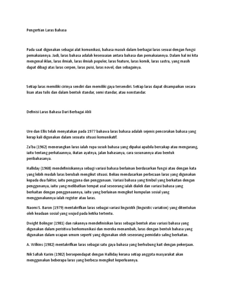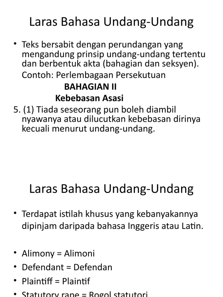 Laras Bahasa Undang-Undang : Jenis laras bahasa * laras bahasa biasa tidak ada kontek khusus atau melibatkan sembarang bidang ilmu, menggunakan bahasa yang tidak formal dan bisa formal juga kondisi nya dalam keadaan resmi * laras bahasa iklan penggunaan bahasa ringkas dan pendek menggunakan jenis bahasa.. Selain itu, terdapat istilah khusus yang dipinjam daripada bahasa lain seperti bahasa inggeris. Kosa kata yang digunakan adalah berdasarkan intepretasinya. Butuh perjuangan yang panjang dan tentunya sangat menguras tenaga dan fikiran. Tentang pengertian bahasa indonesia, dalam uu no. Nomor 24 tahun 2009 tentang bendera, bahasa, dan lambang negara, serta lagu kebangsaan.